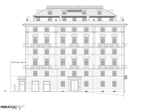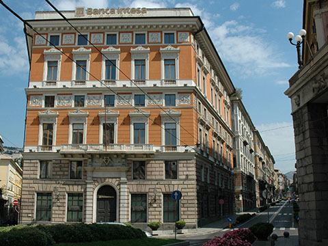 Ristrutturazione edificio giĆ sede genovese della Banca Commerciale Italiana a Genova in piazza DeFerrari, destinazione commerciale e residenziale, 8.500 mq importo lavori 7.600.000 euro (2004/07)